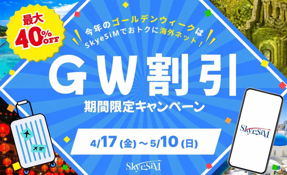 SkyeSiMが、ゴールデンウィーク向けの期間限定キャンペーンを開始しました。