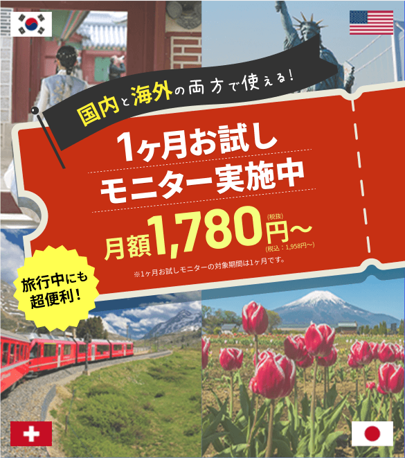 現地到着後に端末の電源を入れていただくだけで、事前手続きなくご利用いただけます。